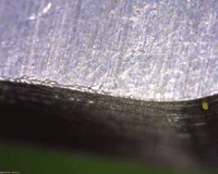 母材の表面をならうように変形しながら作用し凸凹ができずなめらかな表面に仕上がります。