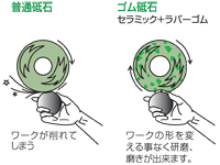 ゴム砥石は、結合材が特殊なゴムを使い作られた砥石のことです。