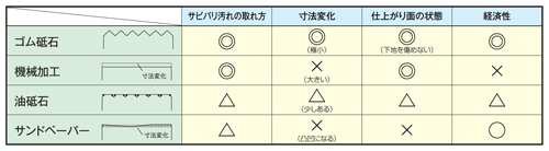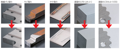 バリ取り、面取り、サビ取り、汚れ取り、ヤケ取り、酸化被膜取りなど